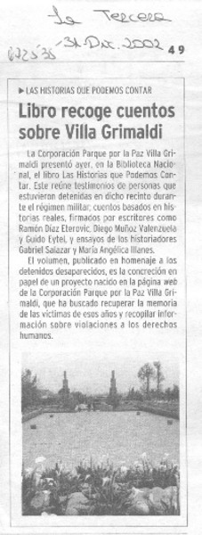 Libro recoge cuentos sobre Villa Grimaldi [artículo]