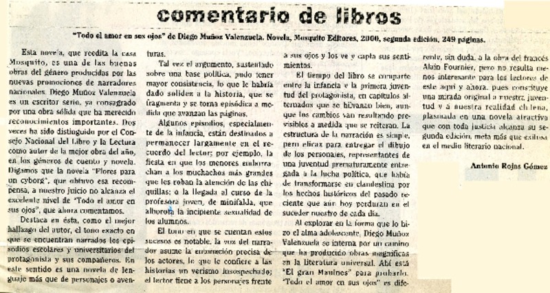 Todo el amor en sus ojos [artículo] Antonio Rojas Gómez.