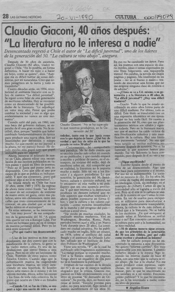 Claudio Giaconi, 40 años después, "La literatura no le interesa a nadie" [artículo] Angélica Rivera.