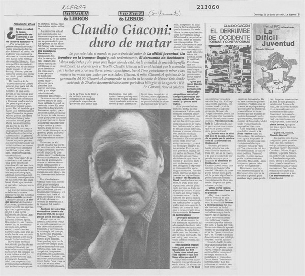Murió Claudio Giaconi, murió la difícil juventud [artículo] Bruno Vidal.