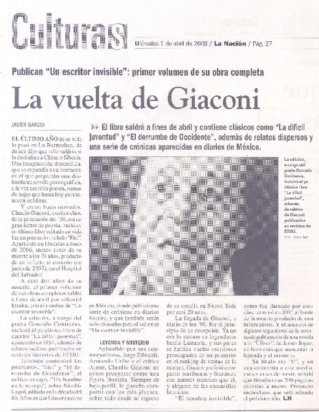 La vuelta de Giaconi [artículo] Javier García.