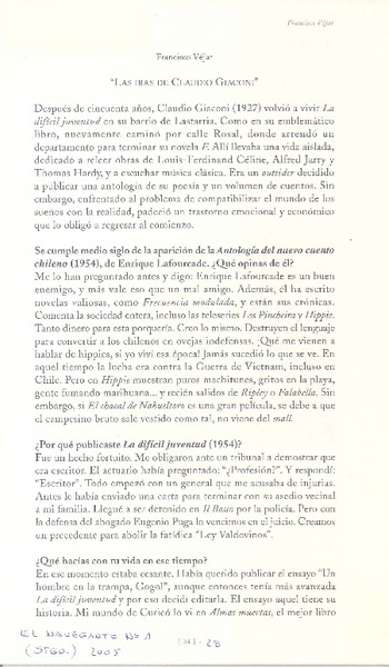 Las iras de Claudio Giaconi [artículo] Francisco Véjar.