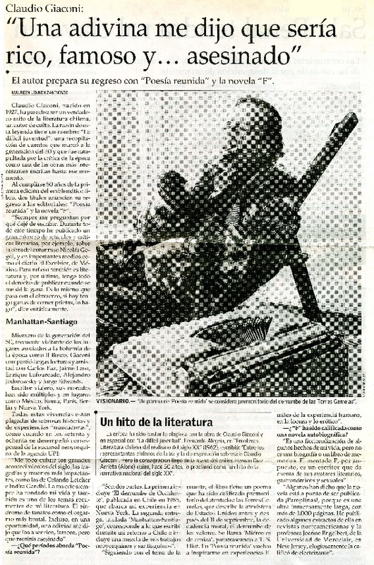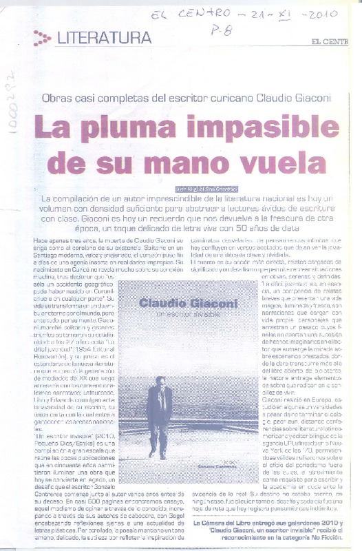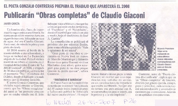 Publicarán "Obras completas" de Claudio Giaconi [artículo]Javier García.
