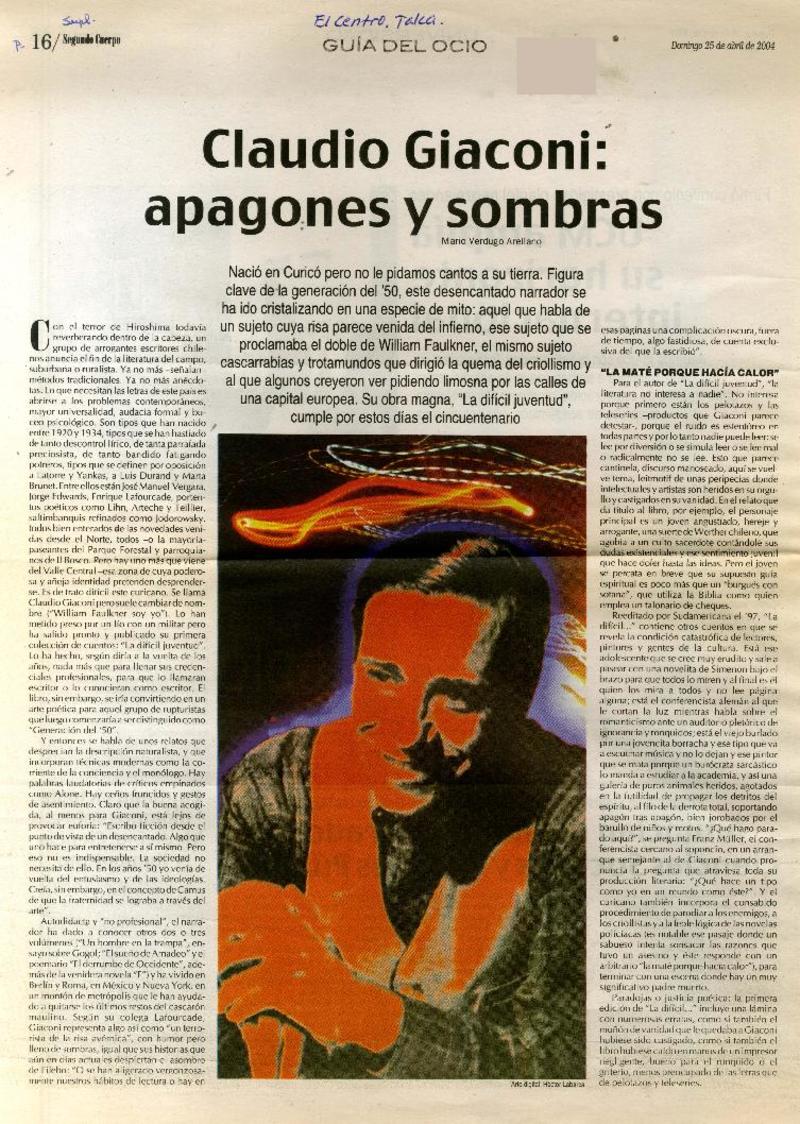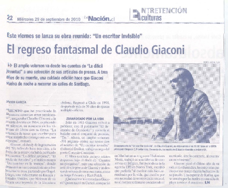 El regreso fantasmal de Claudio Giaconi [artículo] Javier García.