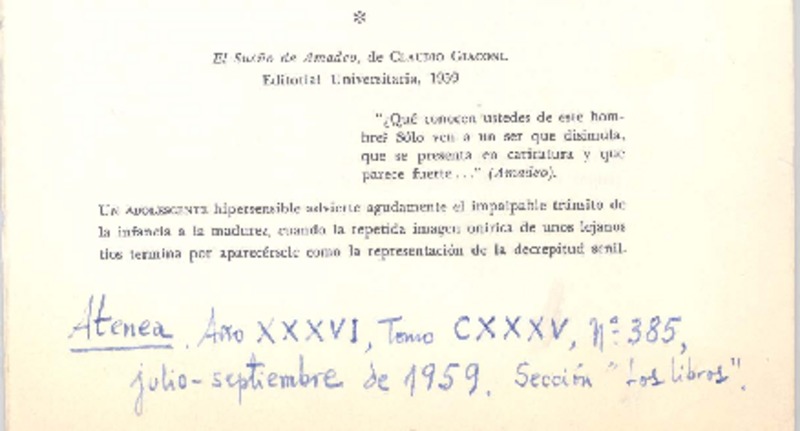 Autores chilenos - Giaconi, Claudio - Sueño de Amadeo