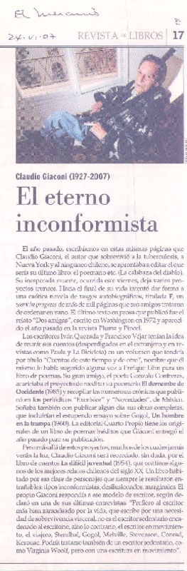 Giaconi, el inconformista [artículo] Antonio Avaria.