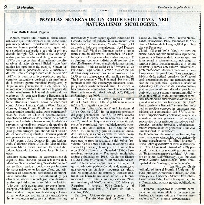 Novelas señeras de un Chile evolutivo [artículo] Ruth Duhart Pilgrim.