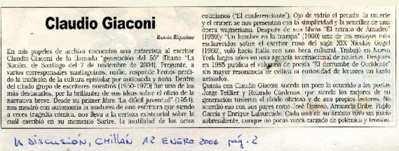 Claudio Giaconi [artículo] Ramón Riquelme.