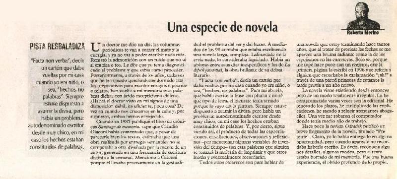 Una especie de novela [artículo] Roberto Merino.