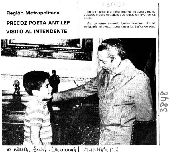 Precoz poeta Antilef visitó al Intendente. [artículo]
