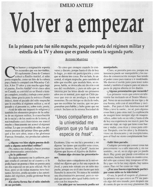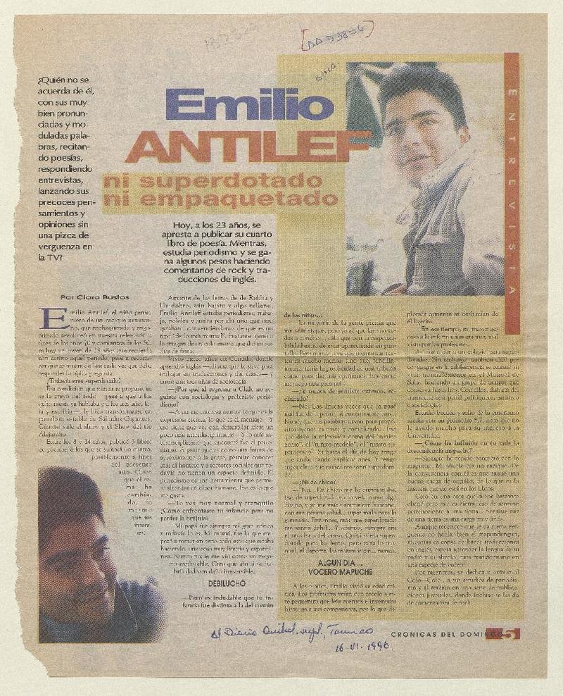 Emilio Antilef, ni superdotado ni empaquetado [entrevista] [artículo] : Clara Bustos.