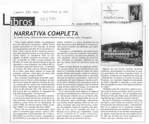 Narrativa completa, de Luis Rivano [artículo] J. M. Vial.
