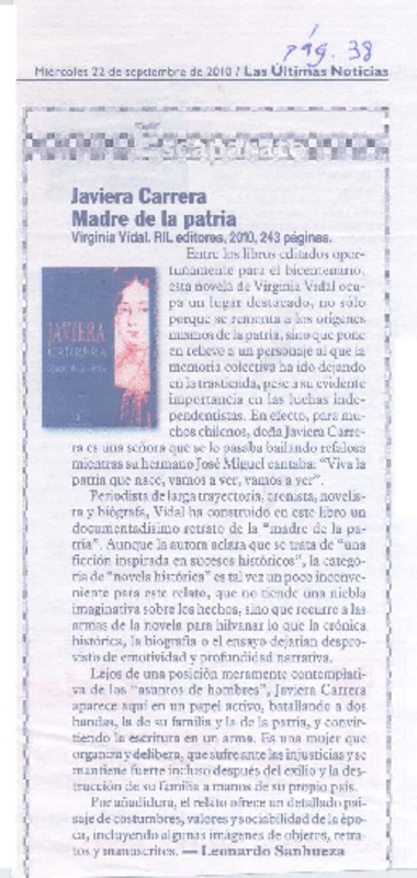 Javiera Carrera - Vidal, Virginia - Autoras chilenas