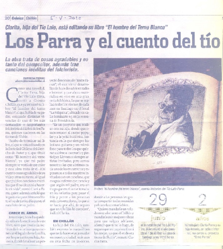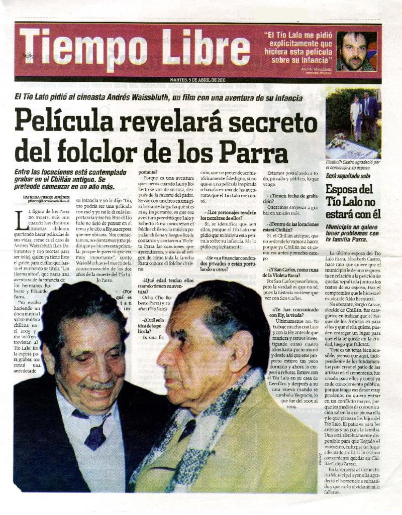 Película revelará secreto del folclor de los Parra [artículo] Patricia Fierro Jiménez.