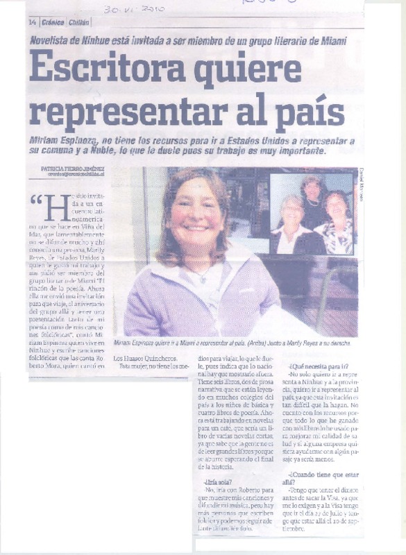 Escritora quiere representar al país (entrevista) [artículo] Patricia Fierro Jiménez.