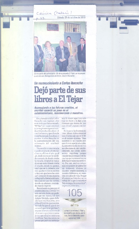 Dejó parte de sus libros a El Tejar [artículo].
