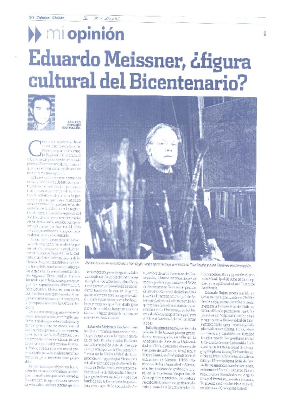 Eduardo Meissner, ¿figura cultural del bicentenario? [artículo] Arnoldo Ferrada San Martín.