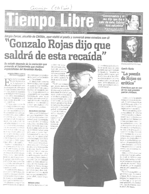 "Gonzalo Rojas dijo que saldrá de esta recaída" [artículo] Patricia Fierro Jiménez.