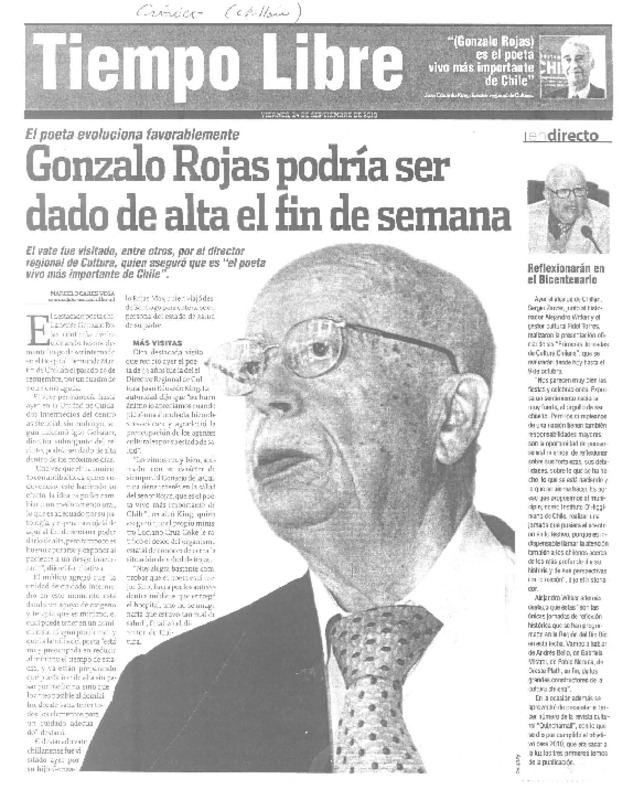 Gonzalo Rojas podría ser dado de alta el fin de semana [artículo] Marcelo Cares Vega.