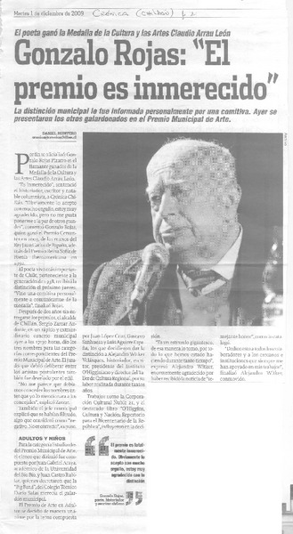 "El premio es inmerecido" [artículo] Daniel Montero.