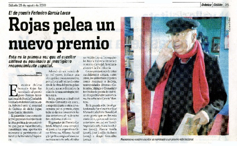 Rojas pelea un nuevo premio [artículo].