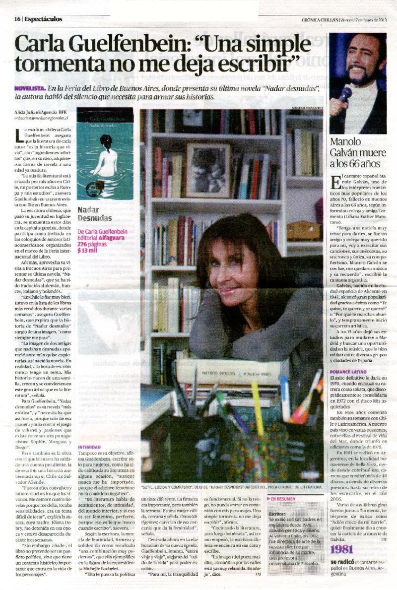 Carla Guelfenbein: "una simple tormenta no me deja escribir" [artículo] Alida Juliani.