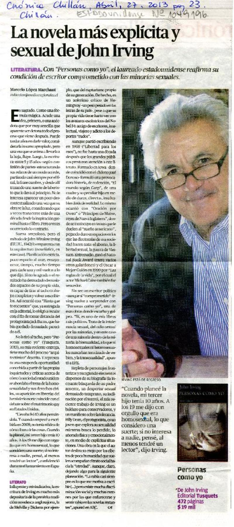 La novela más explícita y sexual de John Irving [artículo] Marcelo López Marchant.