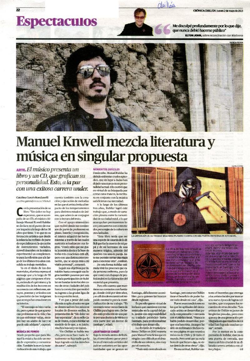 Manuel Knwell mezcla literatura y música en singular propuesta [artículo] Catalina Garcés Rondanelli.