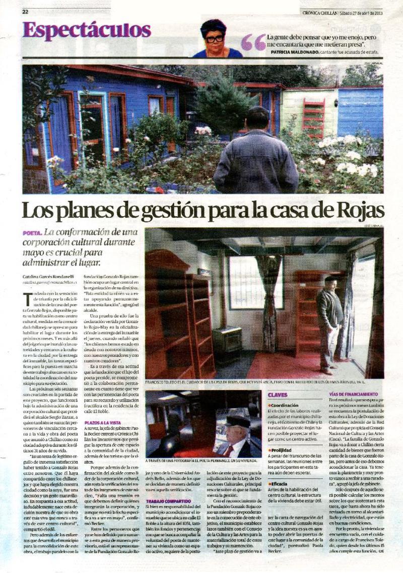 Los planes de gestión para la casa de Rojas [artículo] Catalina Garcés Rondanelli.