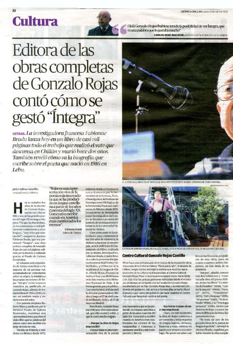 Rojas, Gonzalo - Íntegra - Autores chilenos - Bradu, Fabianne