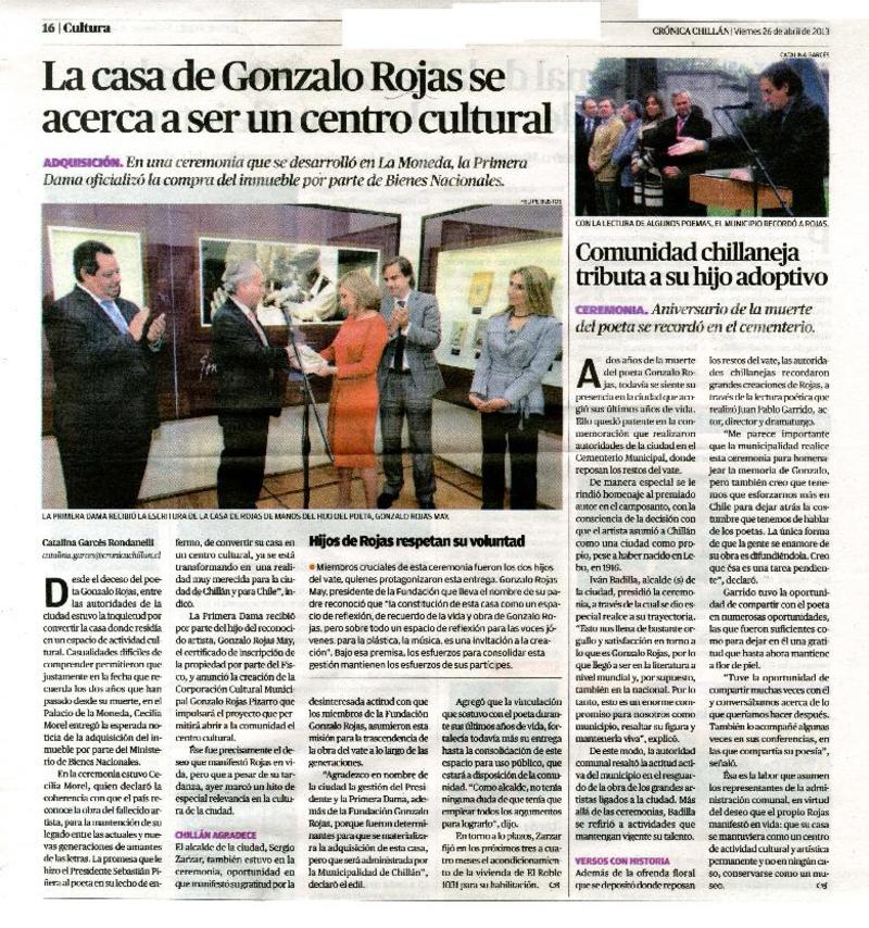 La casa de Gonzalo Rojas se acerca a ser un centro cultural [artículo] Catalina Garcés Rondanelli