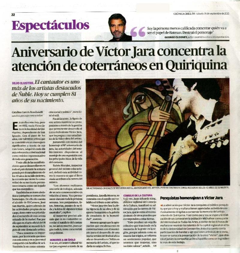 Aniversario de Víctor Jara concentra la atención de coterráneos en Quiriquina [artículo] Catalina Garcés Rondanelli.