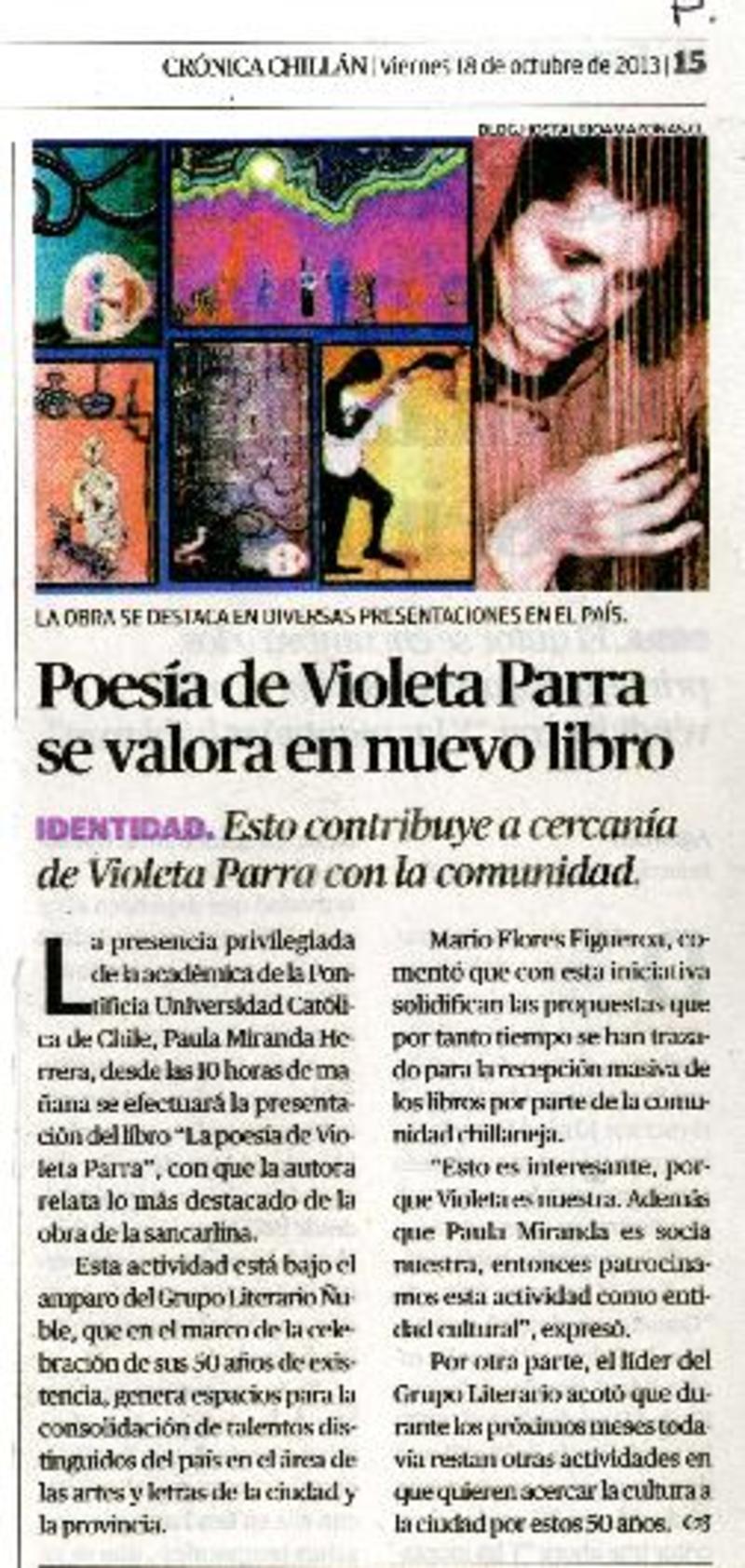 Poesía de Violeta Parra se valora en nuevo libro [artículo]
