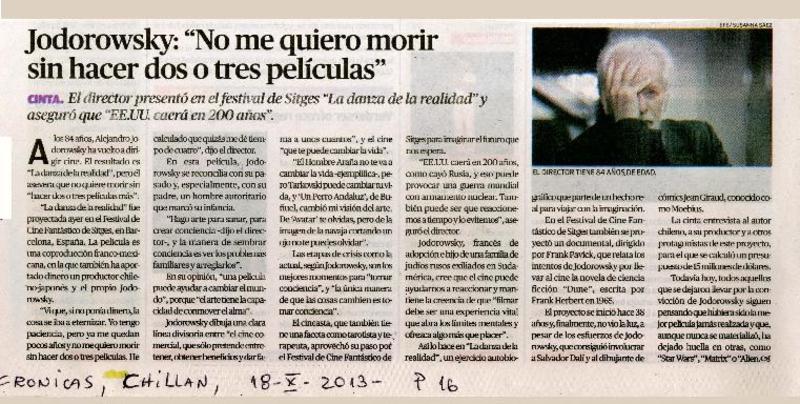 Jodorowsky: "No me quiero morir sin hacer dos o tres películas" [artículo]