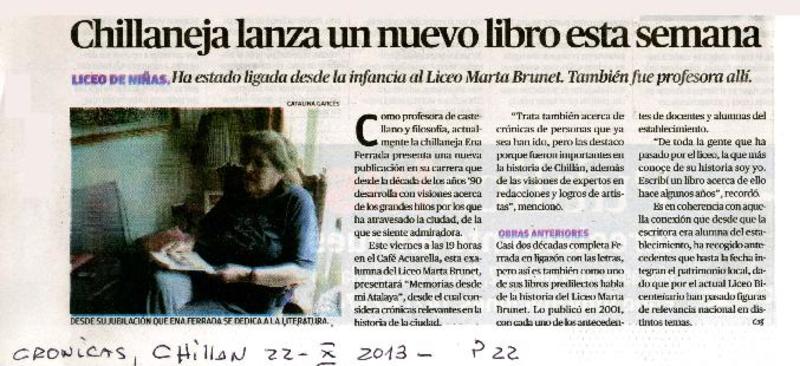 Chillaneja lanza un nuevo libro esta semana [artículo]