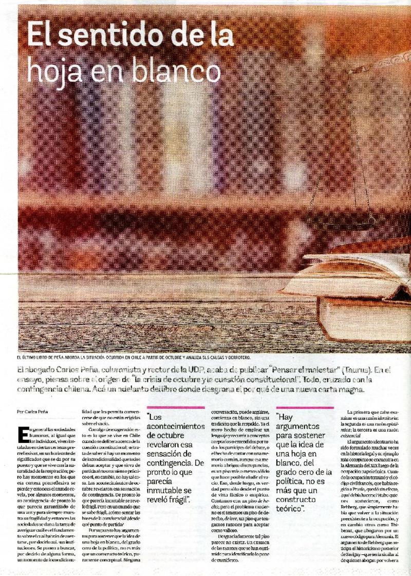 Autores chilenos - Peña, Carlos - Pensar el malestar
