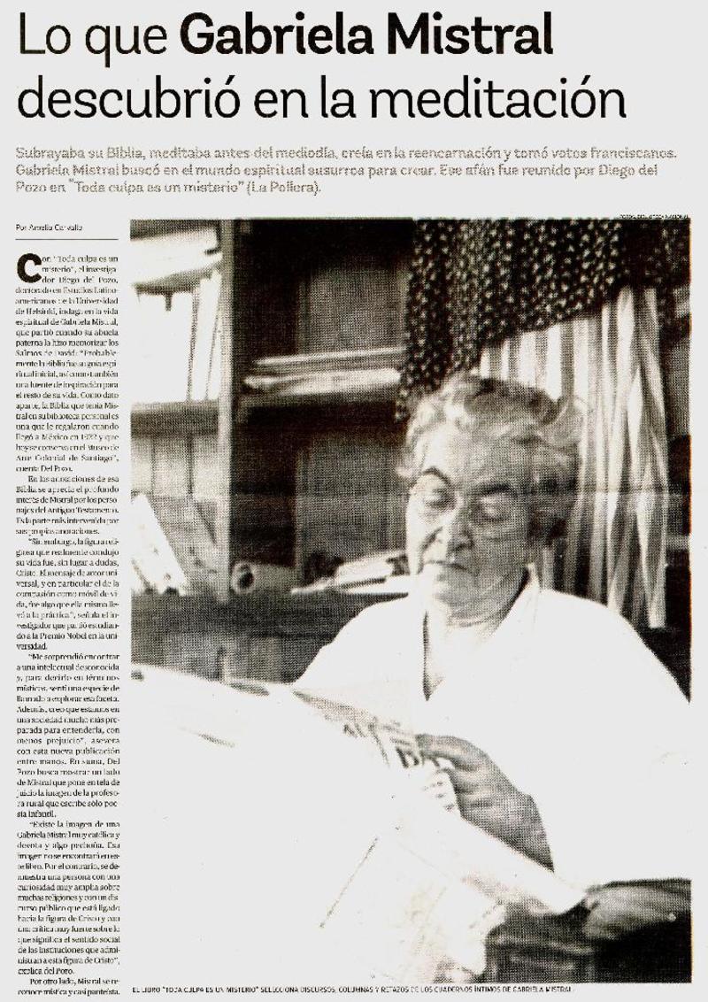 Lo que Gabriela Mistral descubrió en la meditación [entrevista] [artículo] : Amelia Carvallo.