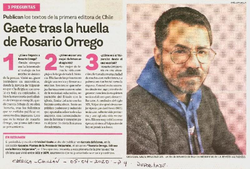 Gaete tras la huella de Rosario Orrego [artículo]
