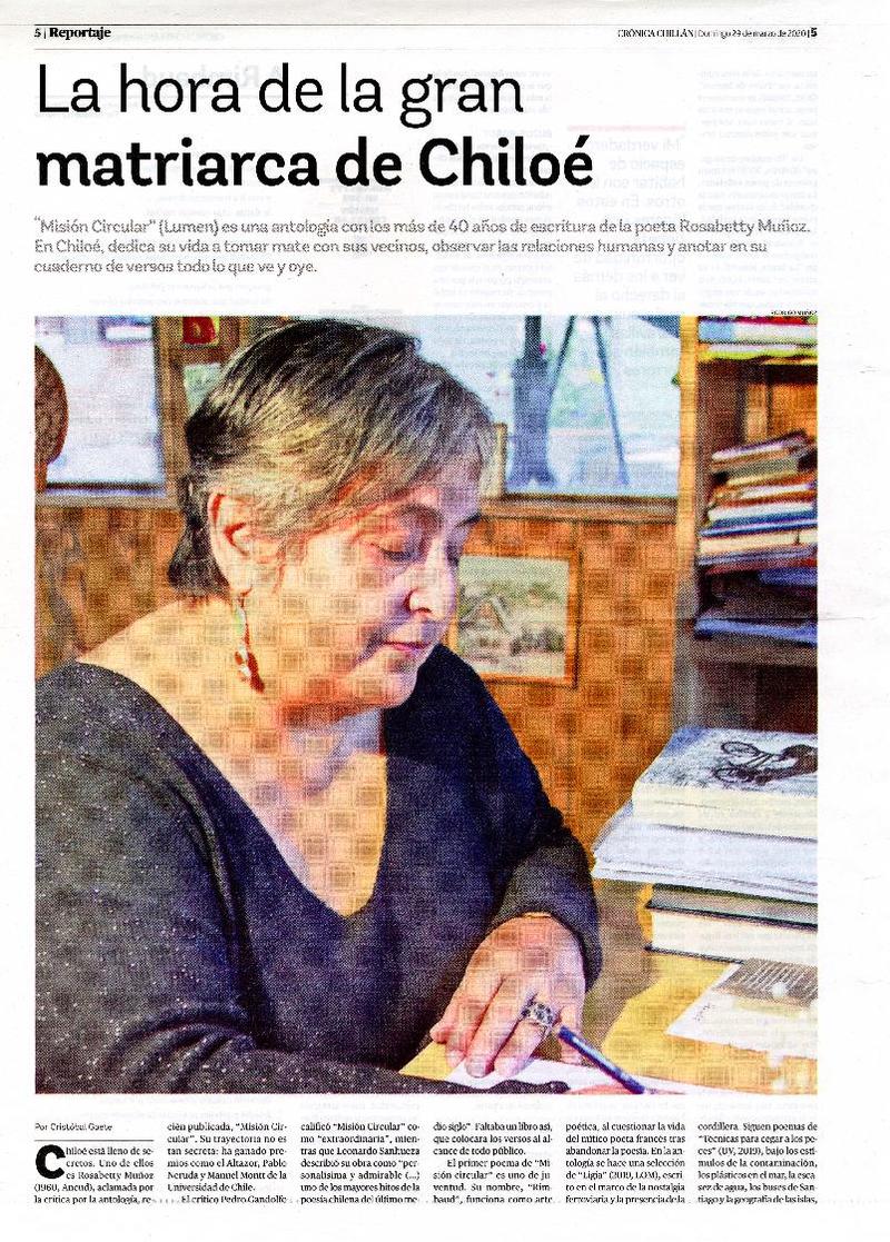 La hora de la gran matriarca de Chiloé [entrevista] [artículo] : Cristóbal Gaete.