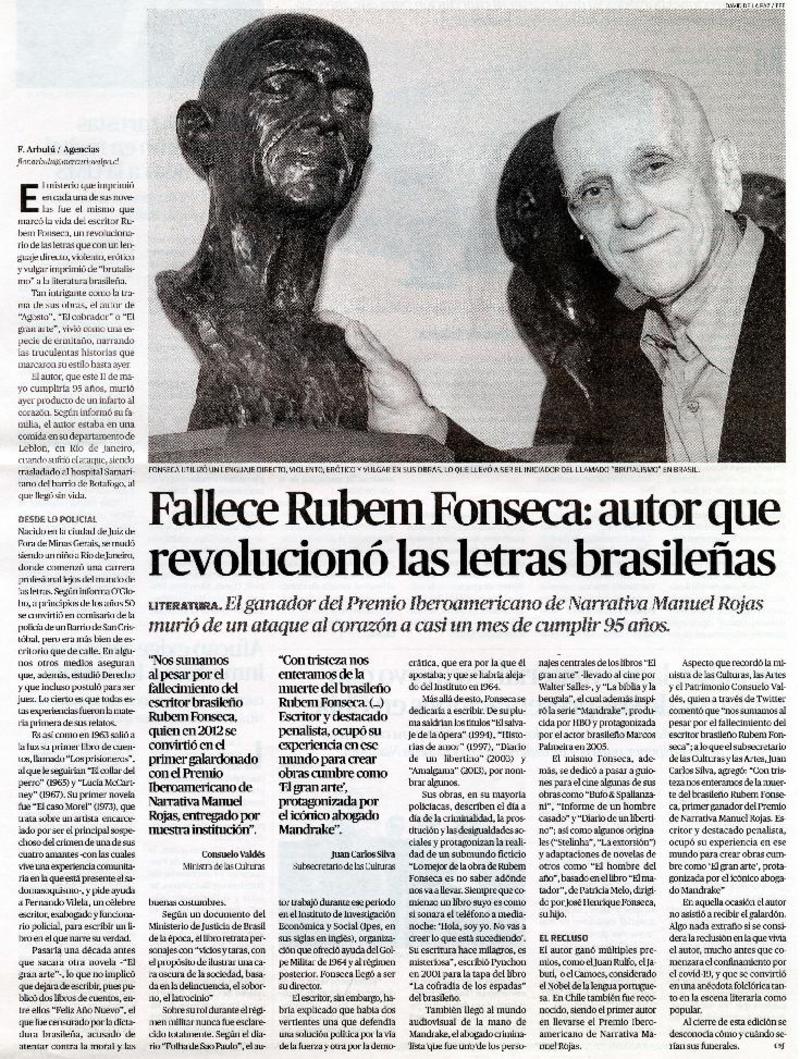 Fallece Rubem Fonseca: autor que revolucionó las letras brasileñas [artículo] F. Arbulú.