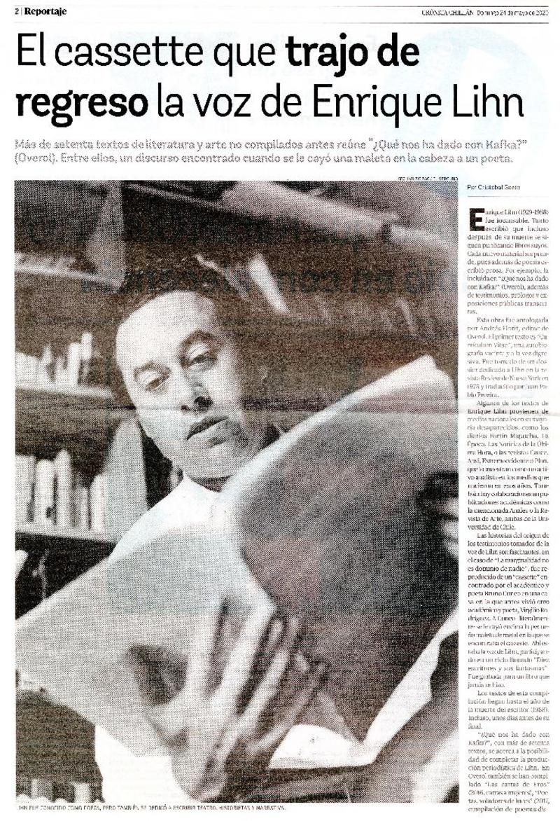 El cassette que trajo de regreso la voz de Enrique Lihn [artículo] Cristóbal Gaete.