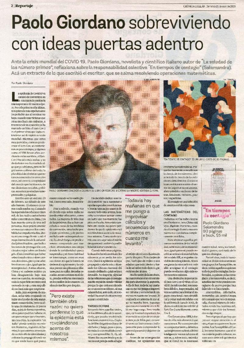 Paolo Giordano sobreviviendo con ideas puertas adentro [artículo]