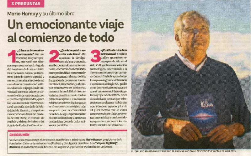 Autores chilenos - Entrevistas - Hamuy, Mario - Viaje al Big Bang