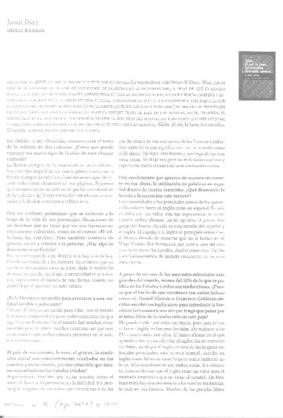 Junot Díaz [artículo] Diego Rabasa.