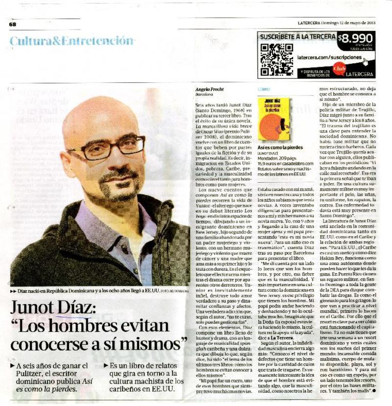 Junot Díaz: "Los hombres evitan conocerse a sí mismos" [artículo] Angela Precht