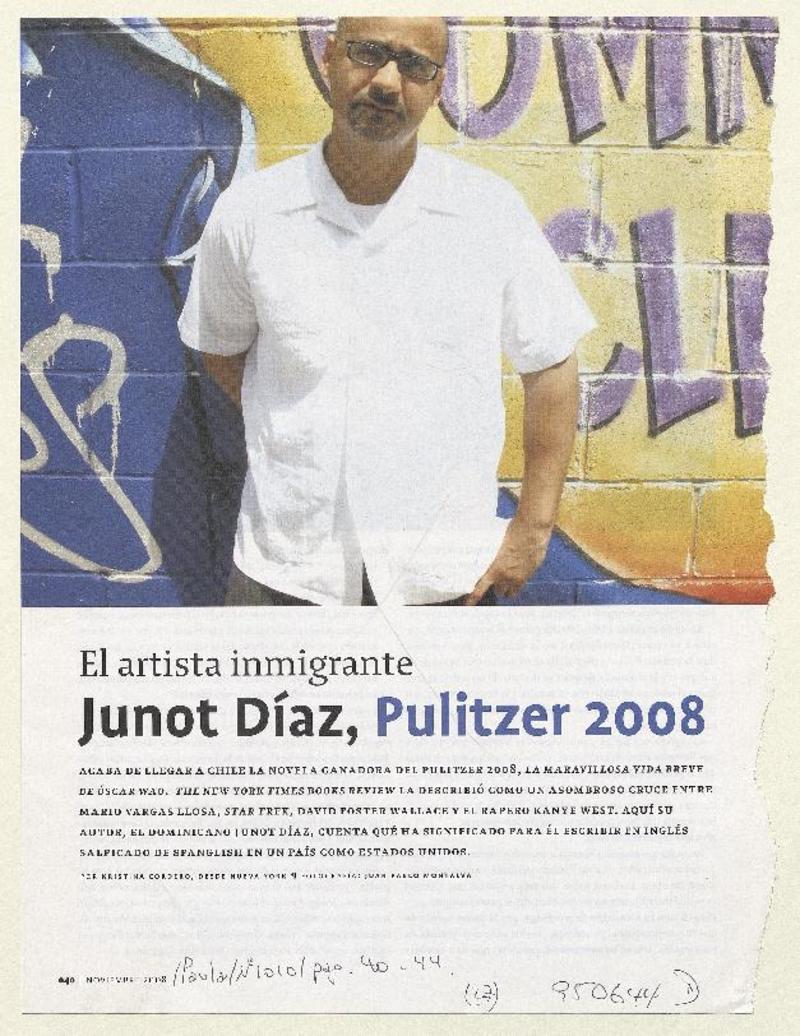 Junot Díaz, Pulitzer 2008 [entrevista] [artículo] : Kristina cordero.