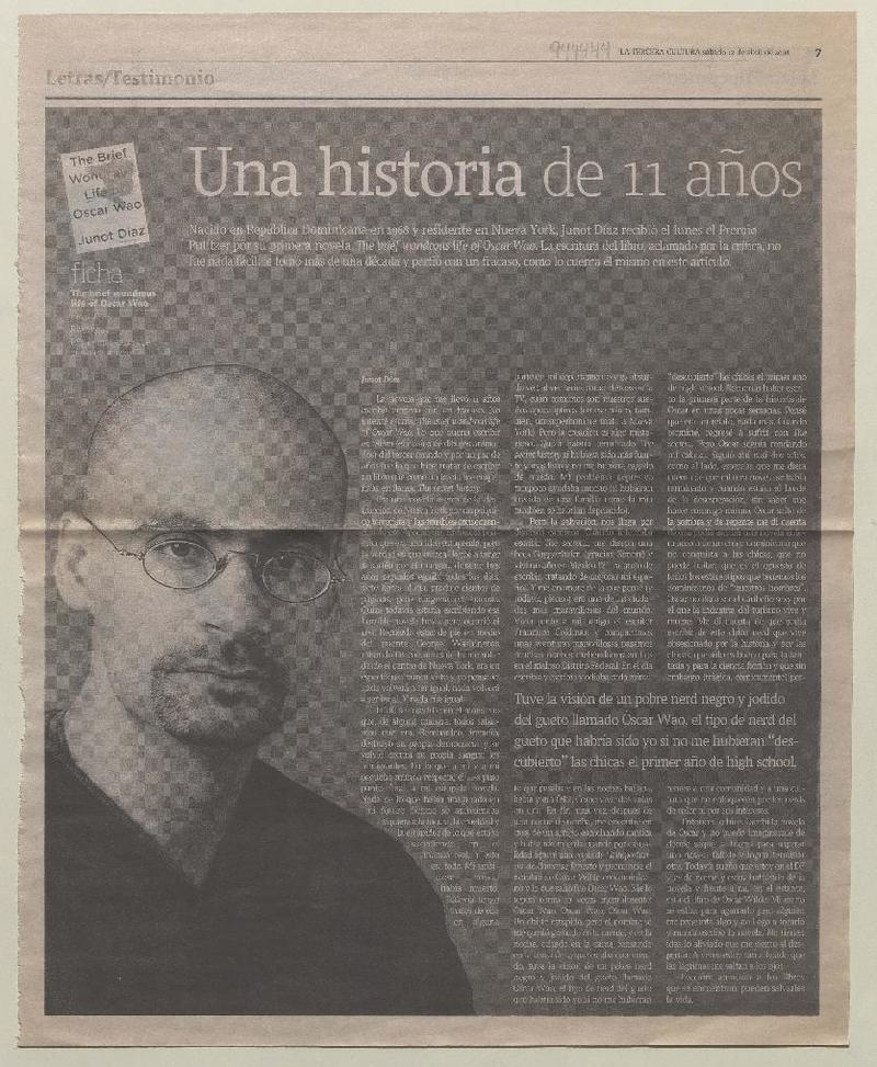 Entrevistas - Autores dominicanos - Díaz, Junot - Maravillosa vida breve de Óscar Wao