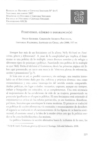 Feminismo, género y diferencia(s) [artículo] Alejandra Castillo.