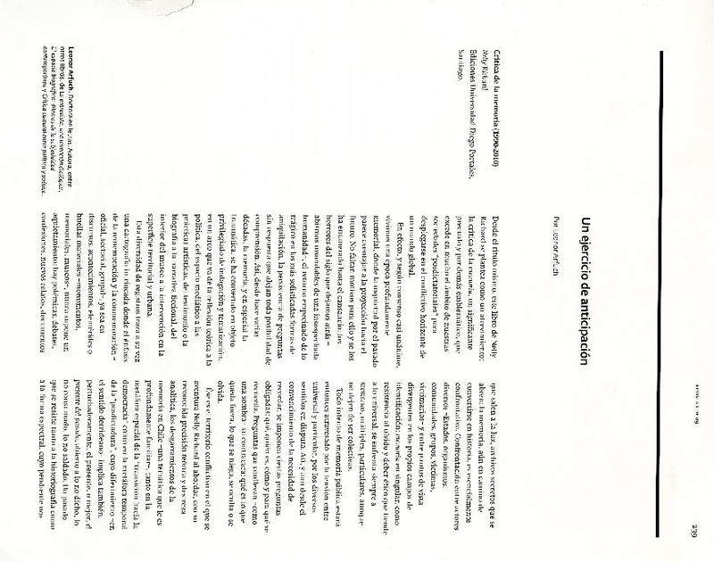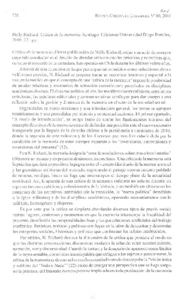 Crítica de la memoria [artículo] Eduardo Vergara Torres.