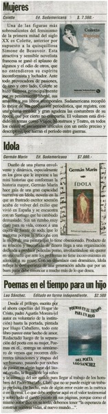 Autoras chilenas - Autores argentinos - Autoras francesas - Duras, Marguerite - Germain, Gabriela - Jara Straussmann, Paulina - ¡Que se bajen los humanos! - Los ojos verdes - Vega Encina, Félix - Thor la mujer águila - Vera, Marcelo - Espicusor